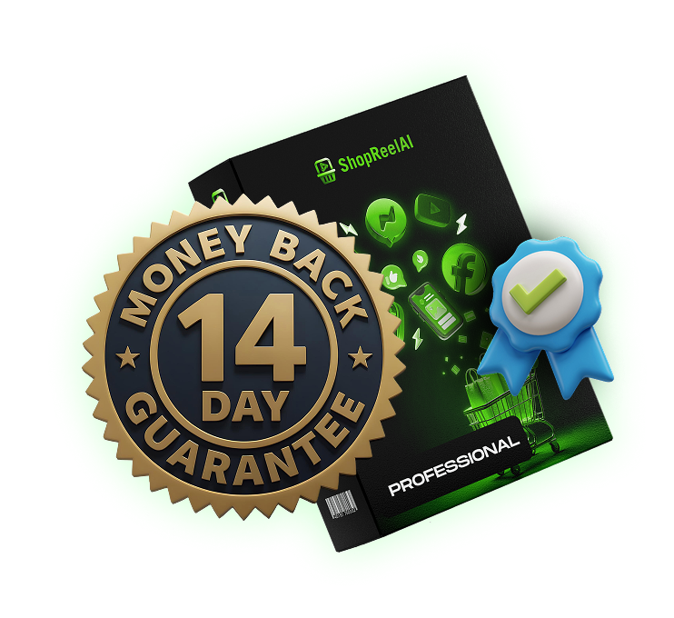 If you don’t absolutely love the control, professionalism, and creative freedom that ShopReelAI Professional gives you, just contact our support team within 14 days, and we’ll refund your full investment. No hassle, no risk, no worries.